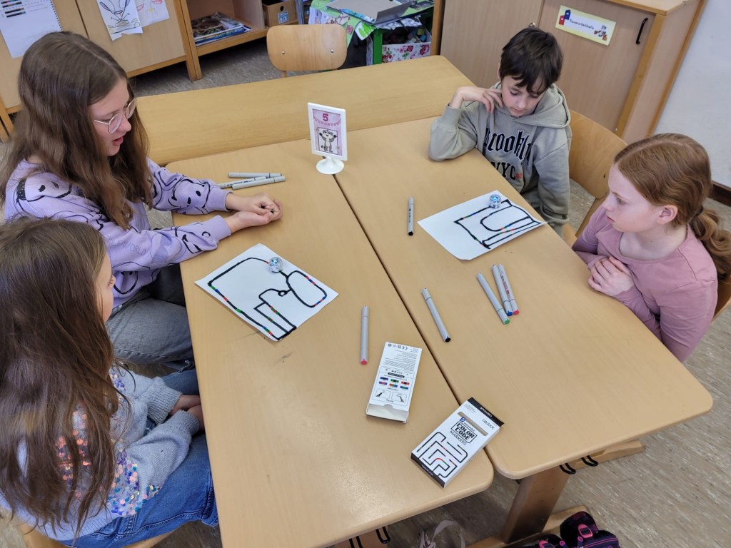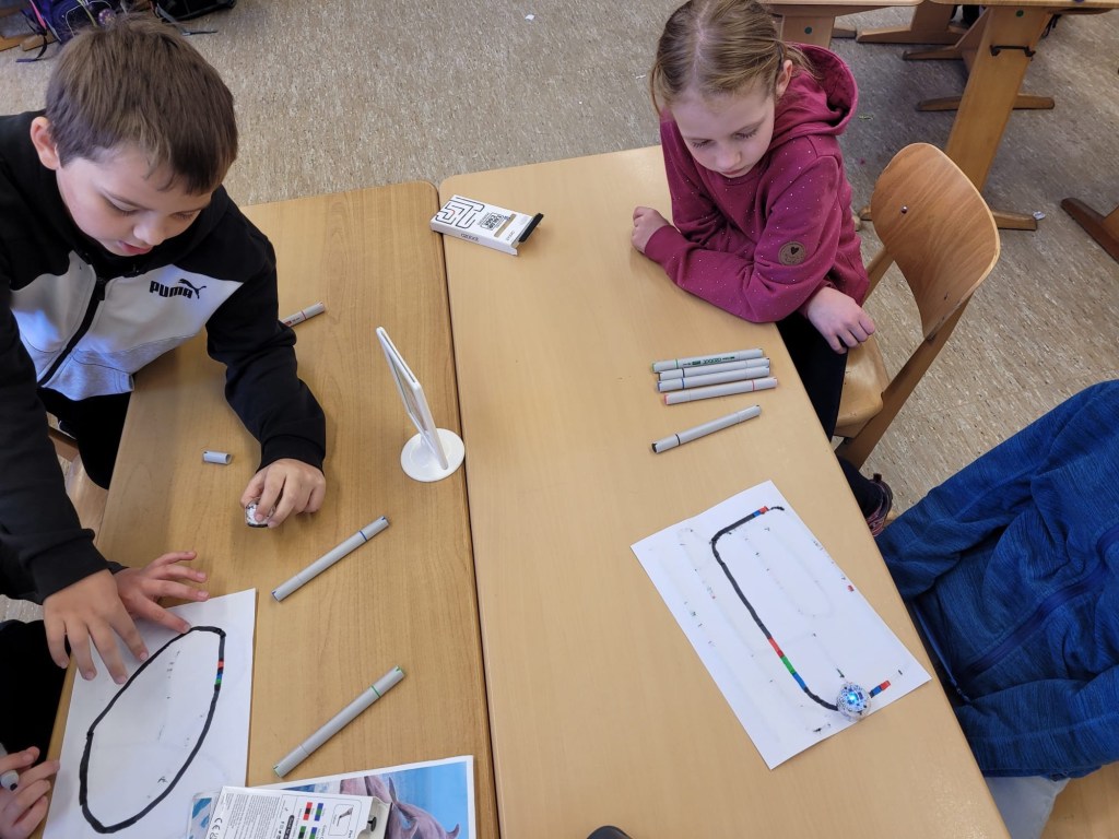 Im vierten Schuljahr kommen die Ozobots zum Einsatz. Die kleinen Roboter kann man über Farbcodes steuern. So gewinnen die Kinder erste Einblicke in die Welt des Programmierens.