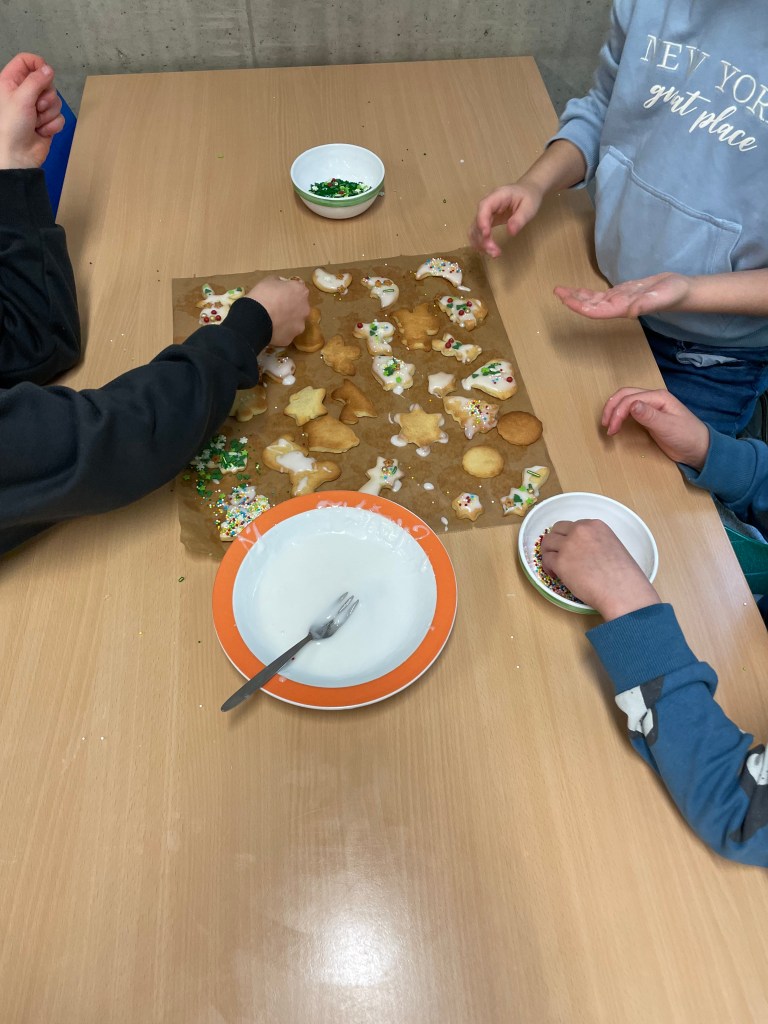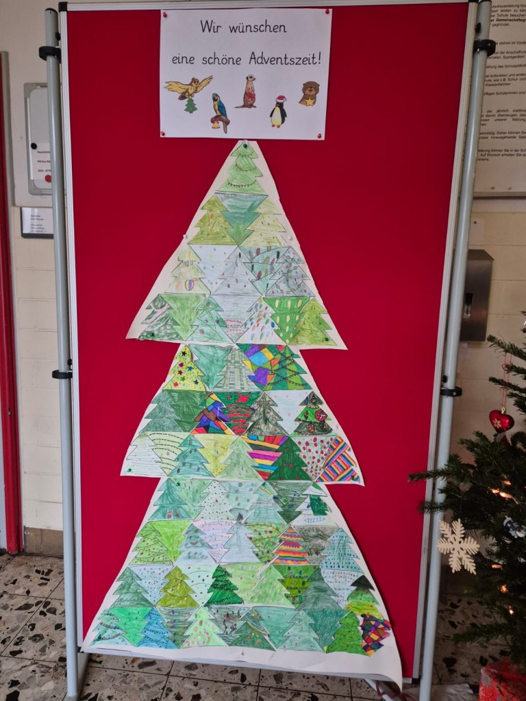 Wir warten auf Weihnachten und hängen jeden Tag ein Bild, dass immer eine andere Klasse ausgemalt hat, dazu…