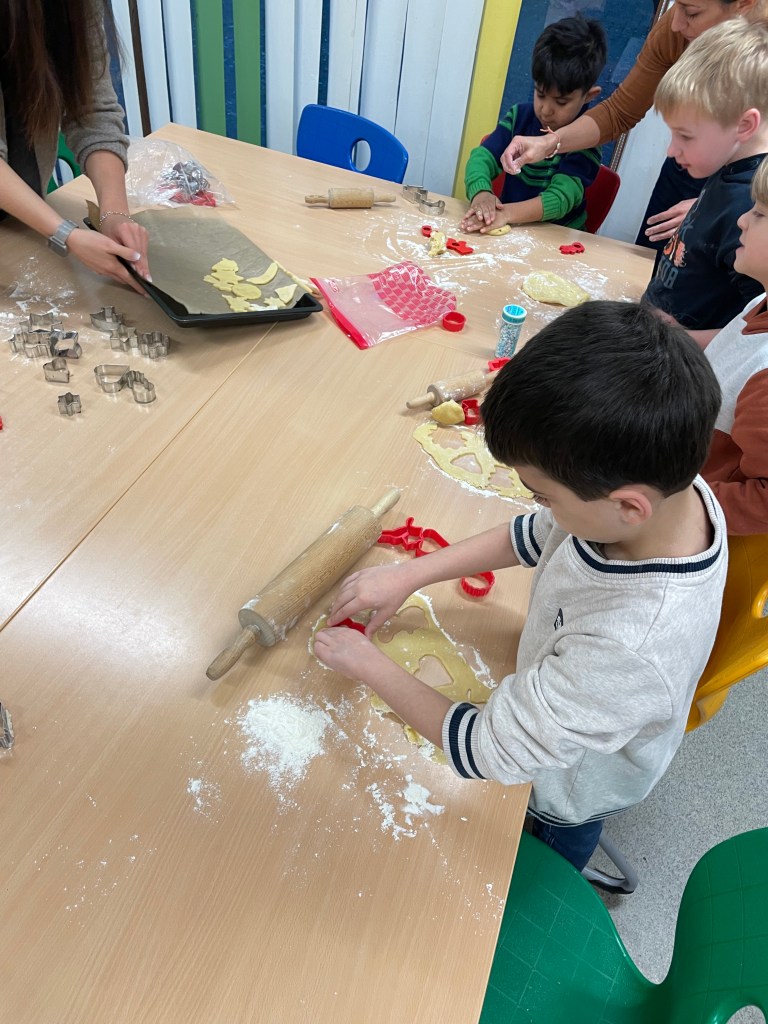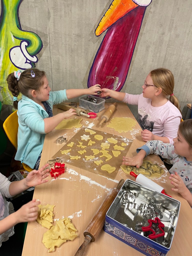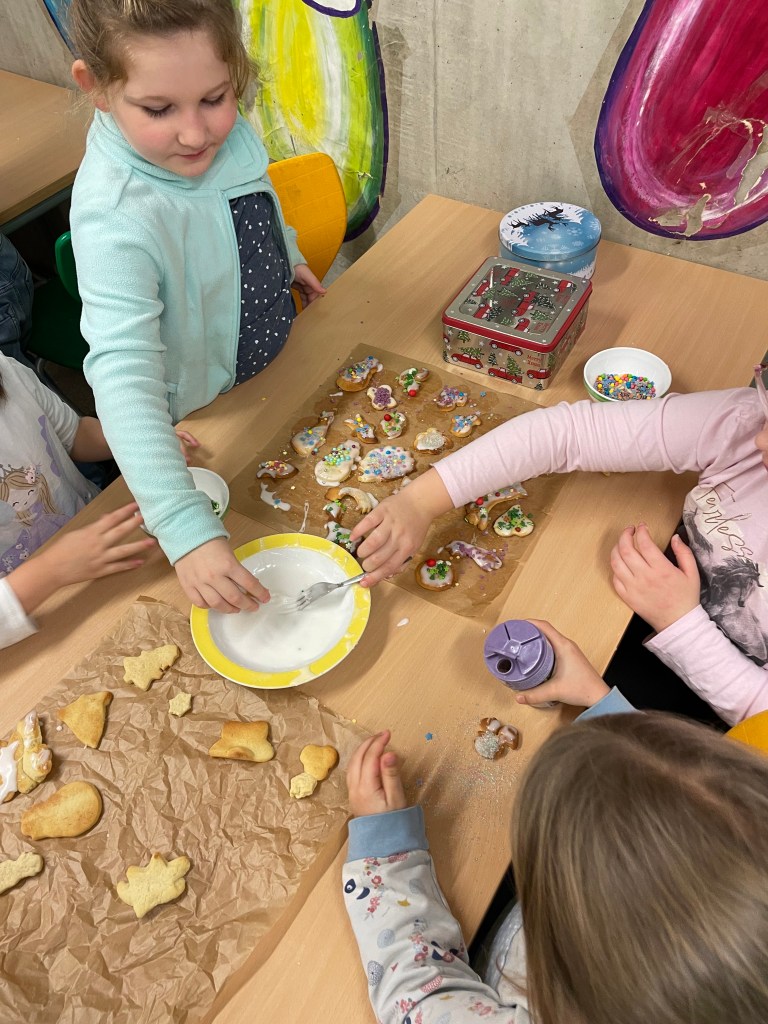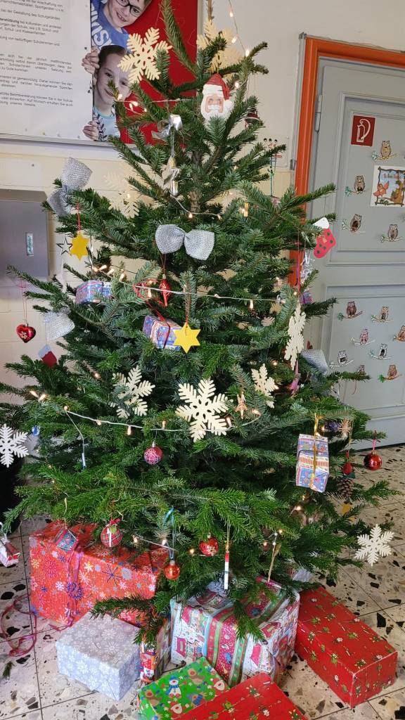 Kinder des 1. Schuljahres bastelten den Baumschmuck und schmückten den Weihnachtsbaum.